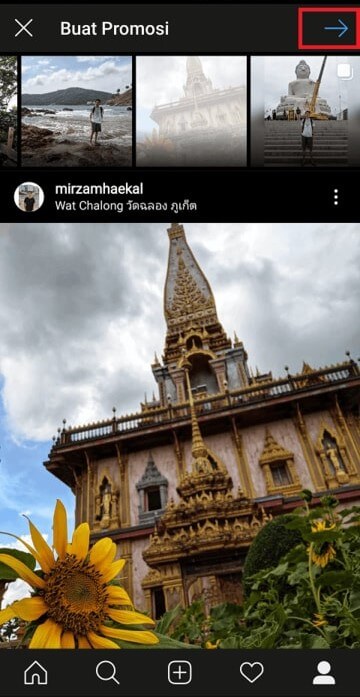 Kemudian, pilih postingan yang ingin Anda promosikan, lalu klik panah di kanan atas.