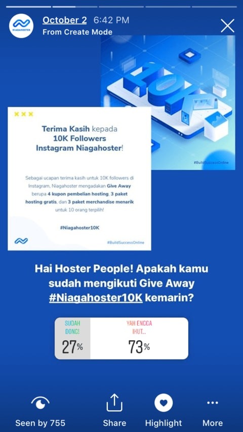 Contohnya bisa Anda lihat pada Instagram Niagahoster. Kami membuat konten yang berisi informasi singkat mengenai berbagai artikel blog beserta link ke sana. Sehingga menarik minat follower untuk menyimpan postingan tersebut apabila mereka membutuhkannya lagi di masa depan.